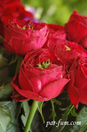 週末にサロンで使った薔薇では、レッドラナンキュラという