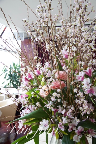 啓翁桜を使いました。蕾の時に生け、一週間で満開になるように
