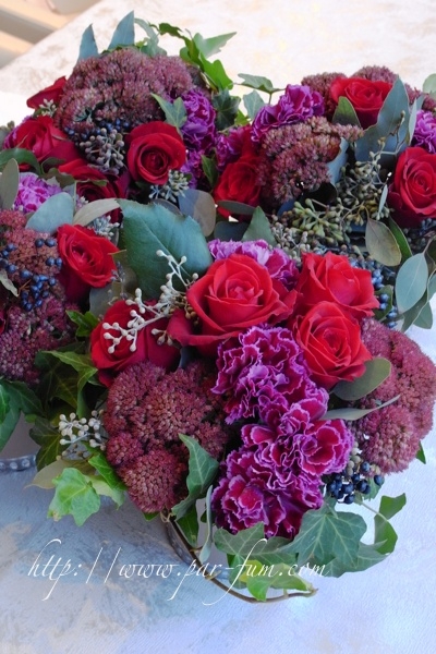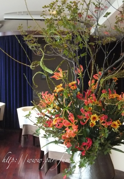 グロリオサと合わせて、紅葉の色を引き立てるようにしました。
