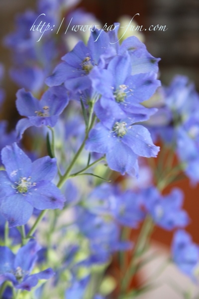 そして本日は、涼しげな水色のお花:デルフィニウムをいけました。
