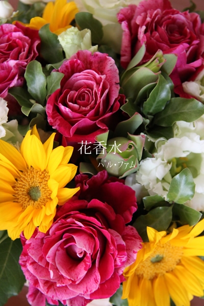 花香水のアレンジでは、通常6-7部咲きのお花をご用意