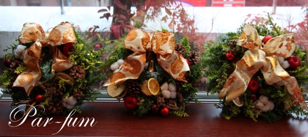 Par-fum尾崎です。11月に入り、今年も残すところ後2ヶ月になりました。今月はクリスマスのレッスンが始まります。クリスマスの1ヶ月前から飾りフレッシュのもみの木やヒムロスギがいい香りを漂わせながらドライになっていくのを楽しみましょう!