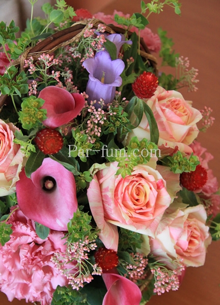 すべてのバラが満開になるように、構成してブーケを組んでいます。
