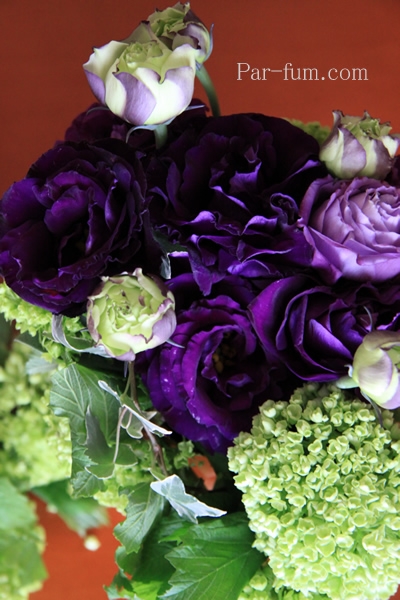 今日は緑色がとても鮮やかで明るいビバーナムとSPバラ等を使い