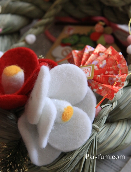 しめ縄のお花は温かく、優しいイメージのフェルトで作られた