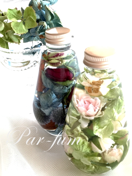 Par-fumは生花専門の教室ですが、フラワーアレンジメントを学ぶ上でアーティフィシャルフラワーとプリザーブド、昨日ご紹介したハーバリウムは作る技術が全く違い、アレンジする場面もあるのでレッスンでカリキュラムに入れています。(2018年1月からデビュタント講座のジャルダンコースで学ぶことが出来ます。)