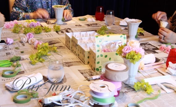 @レストランにてアーティシャルフラワーレッスン時の写真