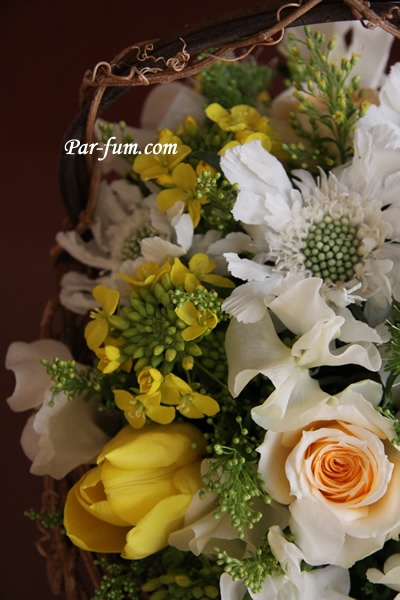 チューリップ、菜の花、スイトピーなどたっぷりお花がはいった