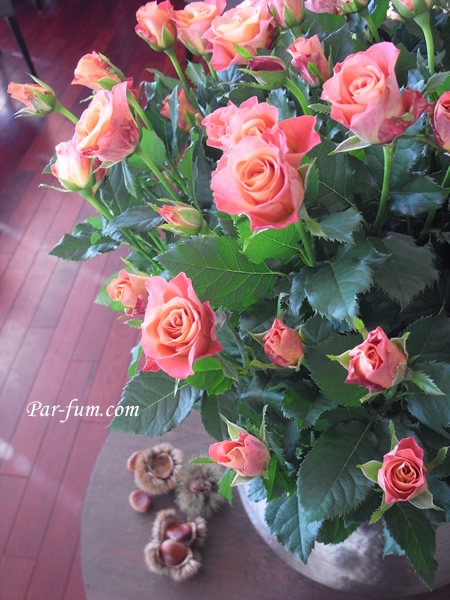 先日は、オレンジ色のバラをたっぷりといけて