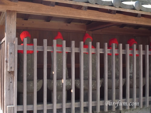お地蔵様は暖かい毛糸の帽子をかぶって、冬支度です。