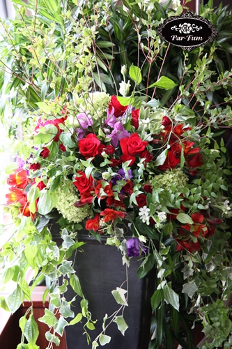 広い会場の数箇所に、大きなアレンジをおきました。