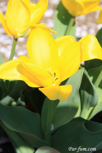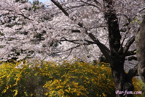 中央の桜の足元にある黄色いお花は、ヤマブキです。