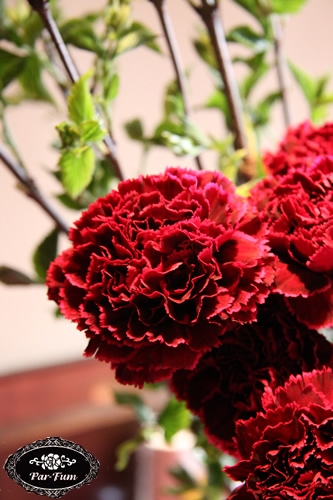 今日はこのカーネーションの他に、ヤマブキをいけて